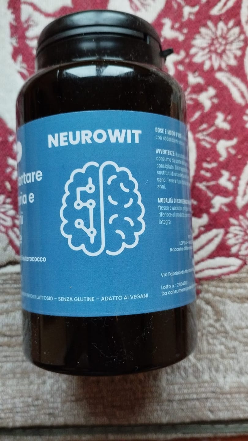 NEUROWIT contiene Bacopa (Bacopa monnieri) estratto di erba titolato al 20% in bacosidi, KSM-66® Ashwagandha estratto di radice titolato al 5% in withanolidi, Citicolina, L-Teanina, Eleuterococco (Eleutherococcus senticosus) estratto di radice titolato allo 0,8% in eleuterosidi, gluconato di zinco, nicotinamide (Niacina), cloridrato di tiamina (Vitamina B1), cloridrato di piridossina (Vitamina B6), riboflavina (Vitamina B2), L-Calcio Metilfolato (Acido Folico) e D-Biotina (Vitamina H).